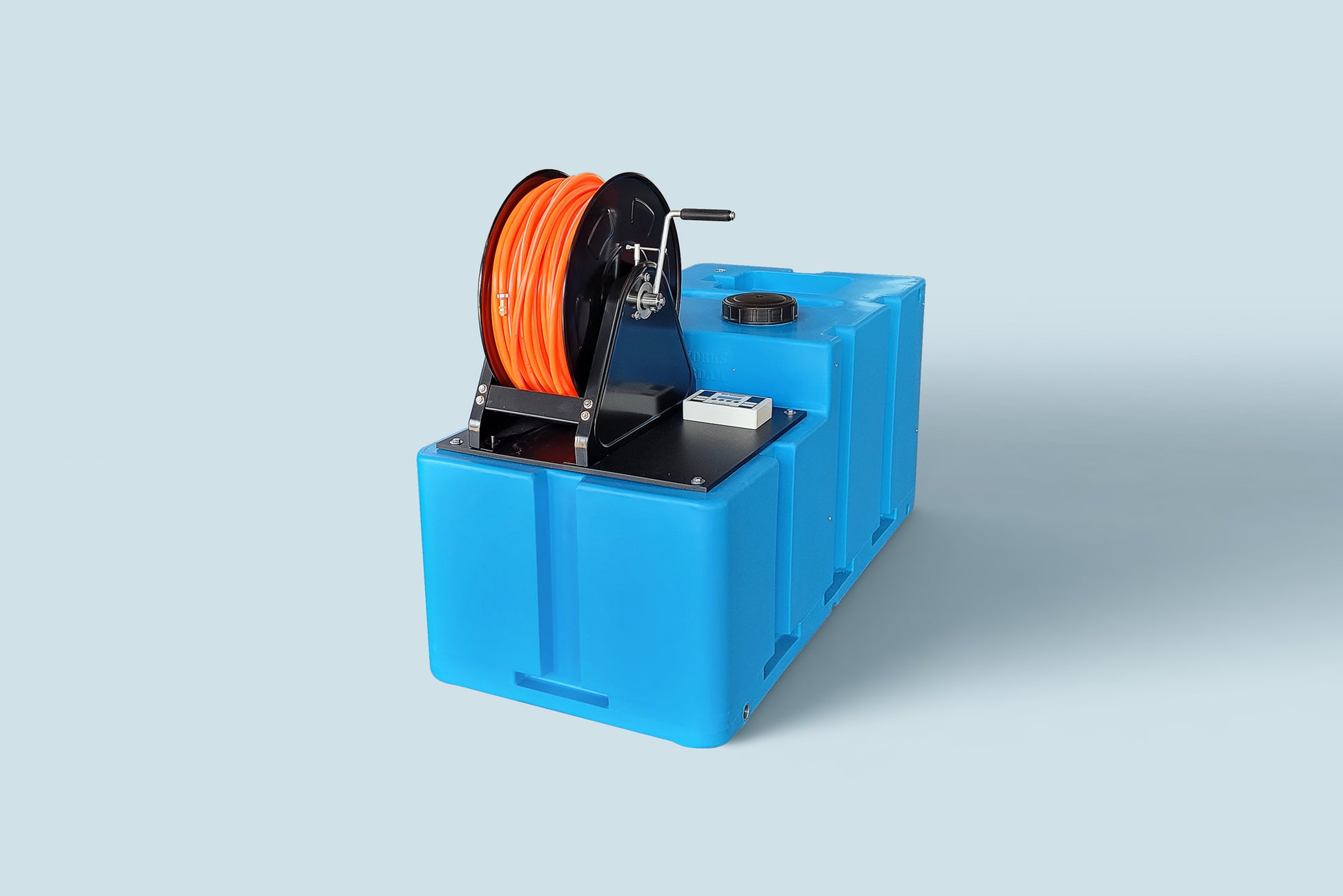 Der Tank ist 135cm lang und 65cm Breit und 64m hoch ohne Schlauchrolle